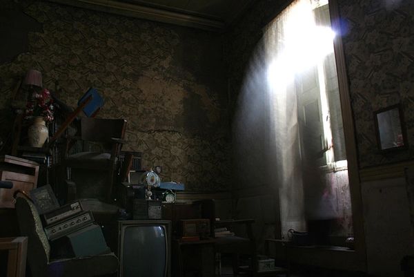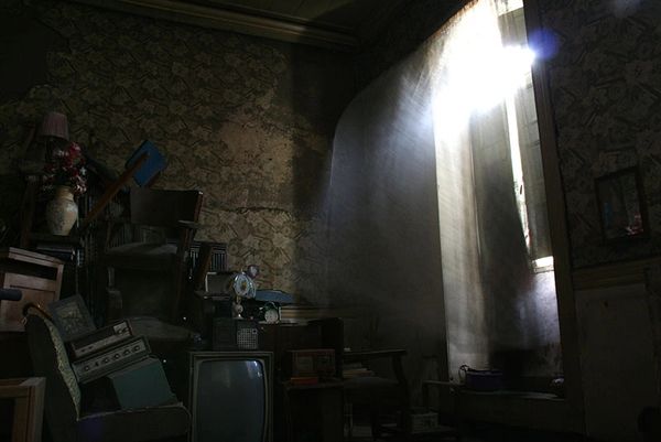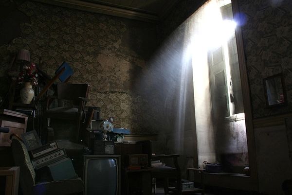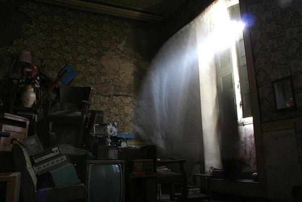 Os cupins nunca suspendiam o trabalho de diluir as vigas de madeira. Anos e anos de árduo roer, morder e digerir e finalmente a matéria, mistura do adobe com as farpas mastigadas, começou a cair sobre a prateleira mais alta do armário.