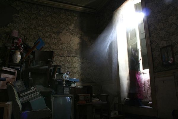 A casa revelou-se passível de ser pensada cômodo a cômodo, como uma maneira de desenovelar o labirinto que era, de decupá-la como a um texto que tem demasiadas informações. Era também potente fonte de memórias pessoais ou alheias, intuídas ou inventadas. Cada cômodo reconstruído caberia, assim, dentro do capítulo de um livro. Então a casa se transformaria, um capítulo após o outro, em livro. Comecei pelo capítulo Pátio de luz e continuei a ocupação por outros cômodos da casa através de meios como a fotografia, a instalação, a performance, a música, o vídeo. Dessa forma, como imagem, a casa se tornaria matéria leve e transportável. Um espaço acessível desde qualquer lugar.