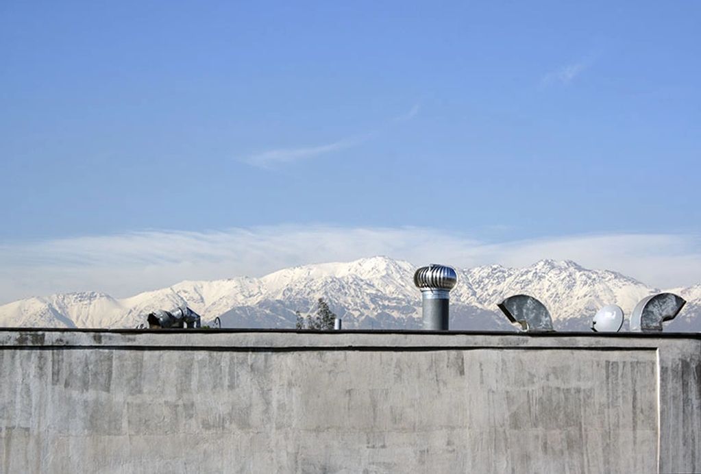 Sobre o teto da casa: a presença das chaminés com a cordilheira ao fundo compunham um novo telhado, muito maior, a ponto de cobrir um espaço além dos limites da casa. Esse escape visual suporta toda a luminosidade do mundo que falta aos espaços internos, e da qual três pátios não conseguem dar conta.